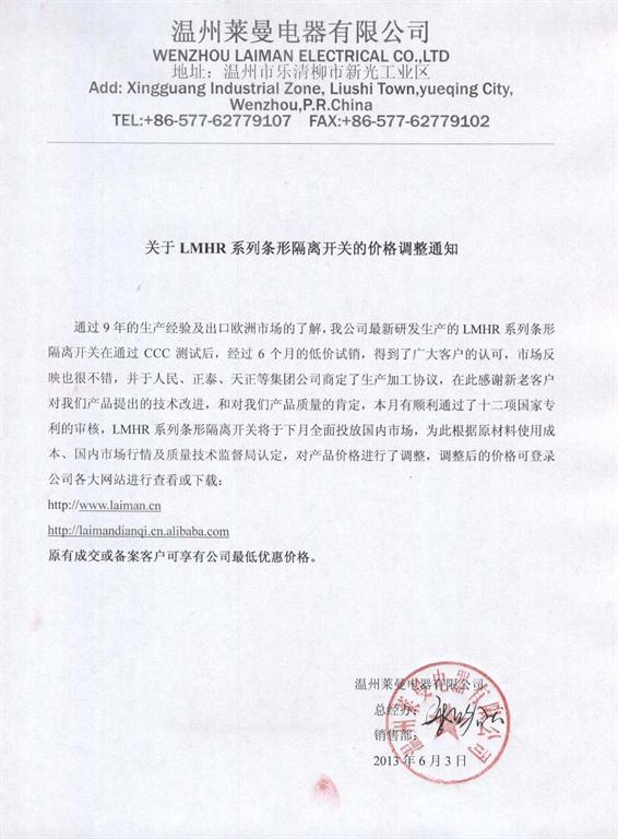 LMHR系列條形隔離開關(guān)調(diào)價(jià)通知 (圖)